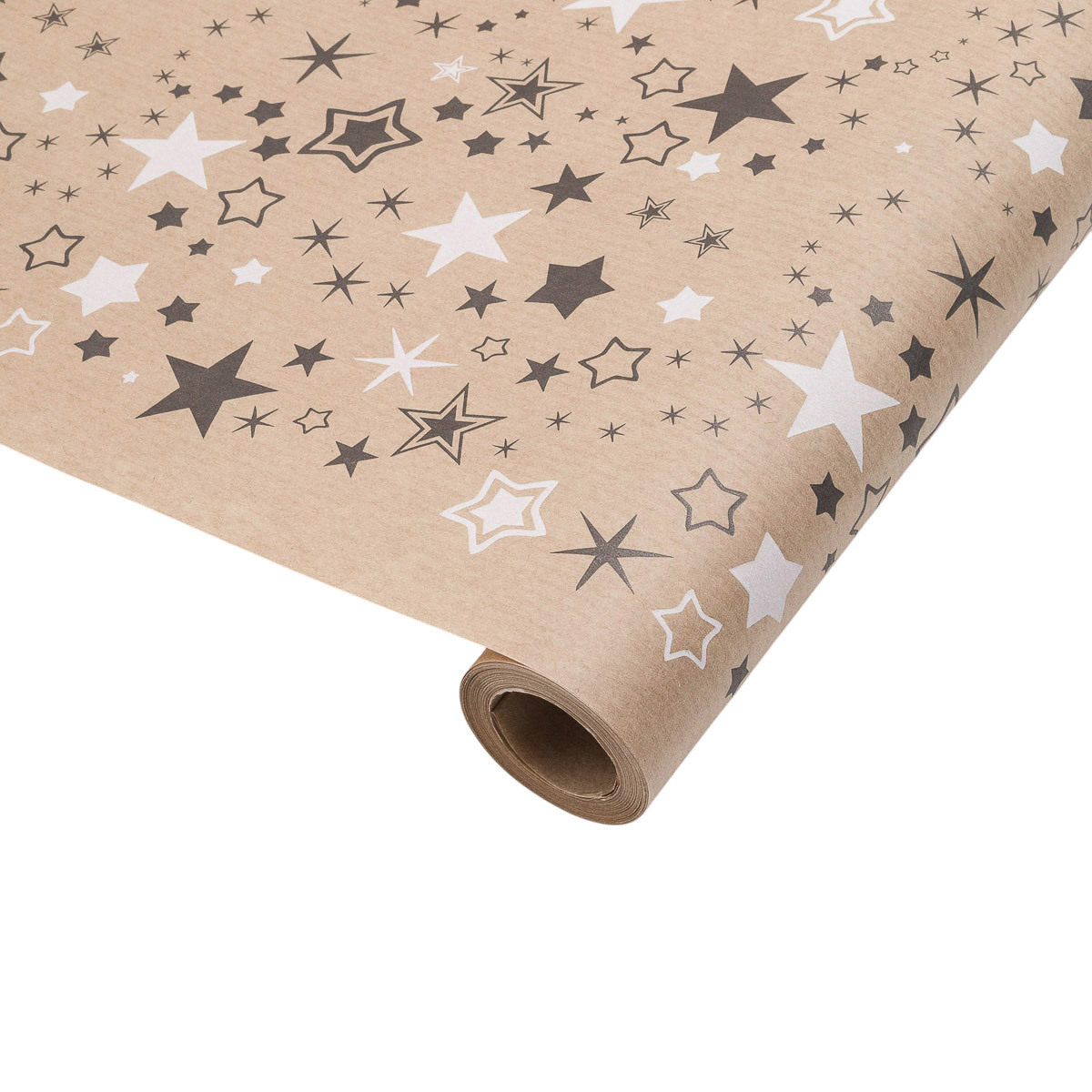 Бумага упаковочная крафт 40 г/м², 70 см / 10 метров, Звезды, белый/графитовый
