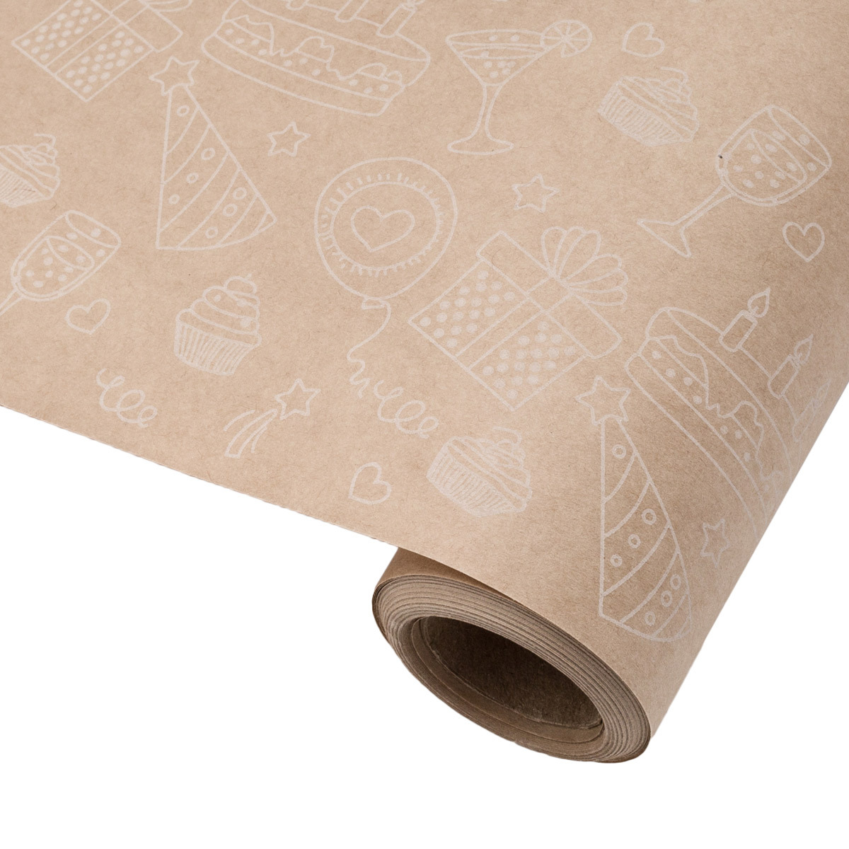Крафтовая упаковочная бумага с оригинальным дизайном Праздник - отличный вариант для упаковки подарков. Этот материал часто используют для оформления коробок, букетов и книг. Сегодня крафтовая бумага является одним из самых стильных и современных трендов, который подойдёт для любого случая. Проявите свою фантазию и украсьте этой бумагой декорации, стенды и витрины. Кроме того, чтобы порадовать близкого человека, не ждите специальный повод, просто красиво упакуйте любую вещь, которую хотите подарить, чтобы увидеть искреннюю улыбку. Крафтовая бумага прочная, экологичная и хорошо держит форму. Для аккуратной фиксации рекомендуем использовать двусторонний скотч. Готовая коробка может быть украшена лентами, бантами, наклейками и бирками - экспериментируйте и проявляйте творческий подход! Есть и другие интересные идеи использования крафтовой бумаги: - украшение рамки, шкатулки или подставки для горячих предметов; - использование бумаги в качестве обложки для блокнота или альбома; - создание праздничных гирлянд, ёлочных игрушек и других поделок из этого материала. Размер: ширина листа 70 см, длина 10 м. Плотность: 70 г/м². Цвет принта: белый.