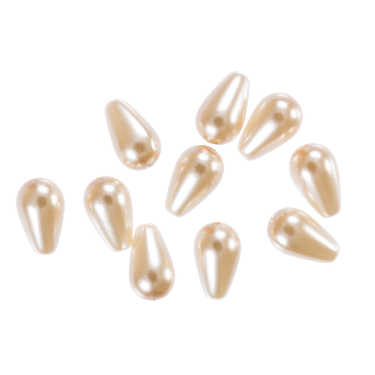 Бусины стекло под жемчуг 10х6 мм, фигурная, 10 шт, молочный (creamRose), Preciosa 131-50-011