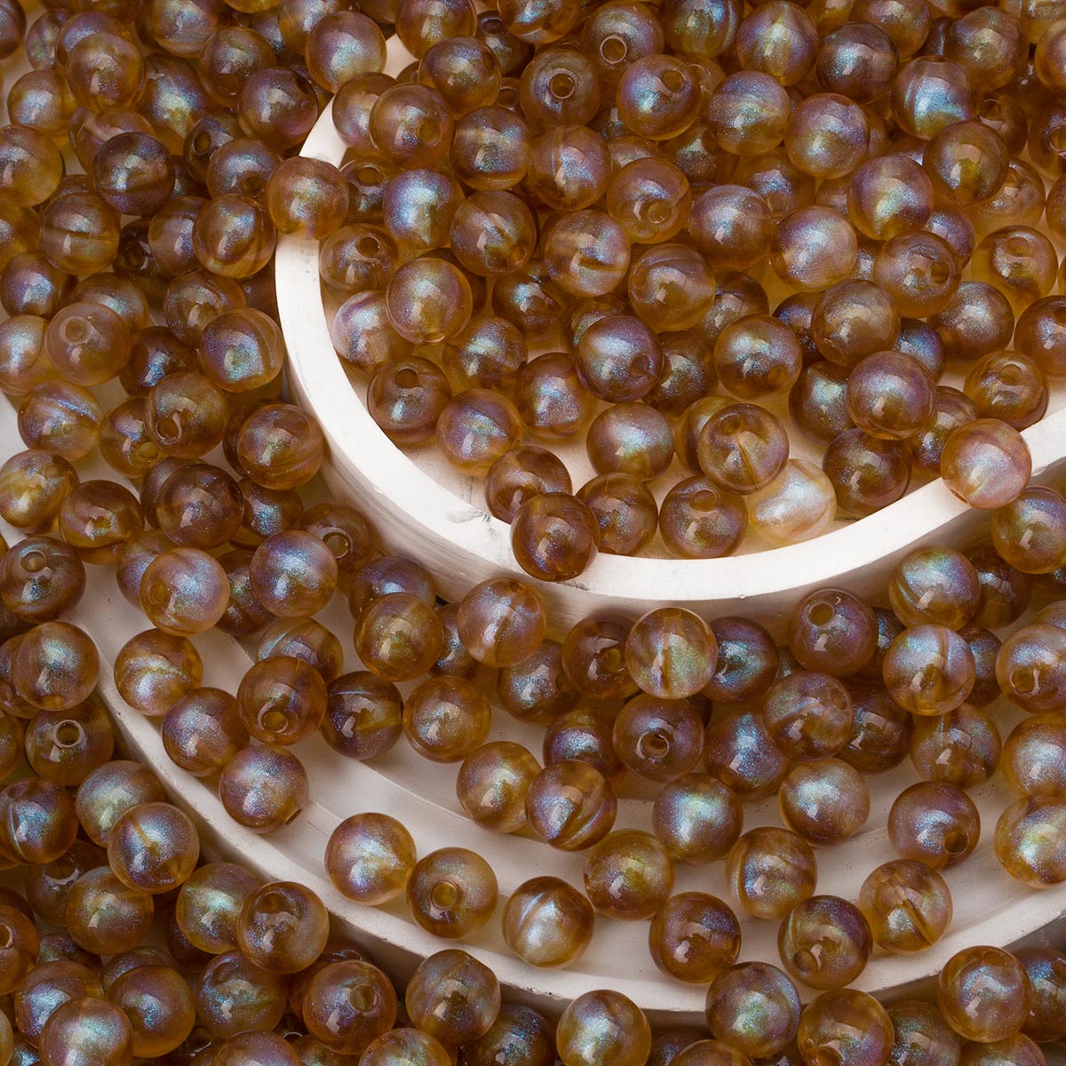 Бусины акрил 10мм, 500 г, дымка с АВ шиммером, круглые, AD037 темно янтарный, (7748708)2010 , Astra&Craft
