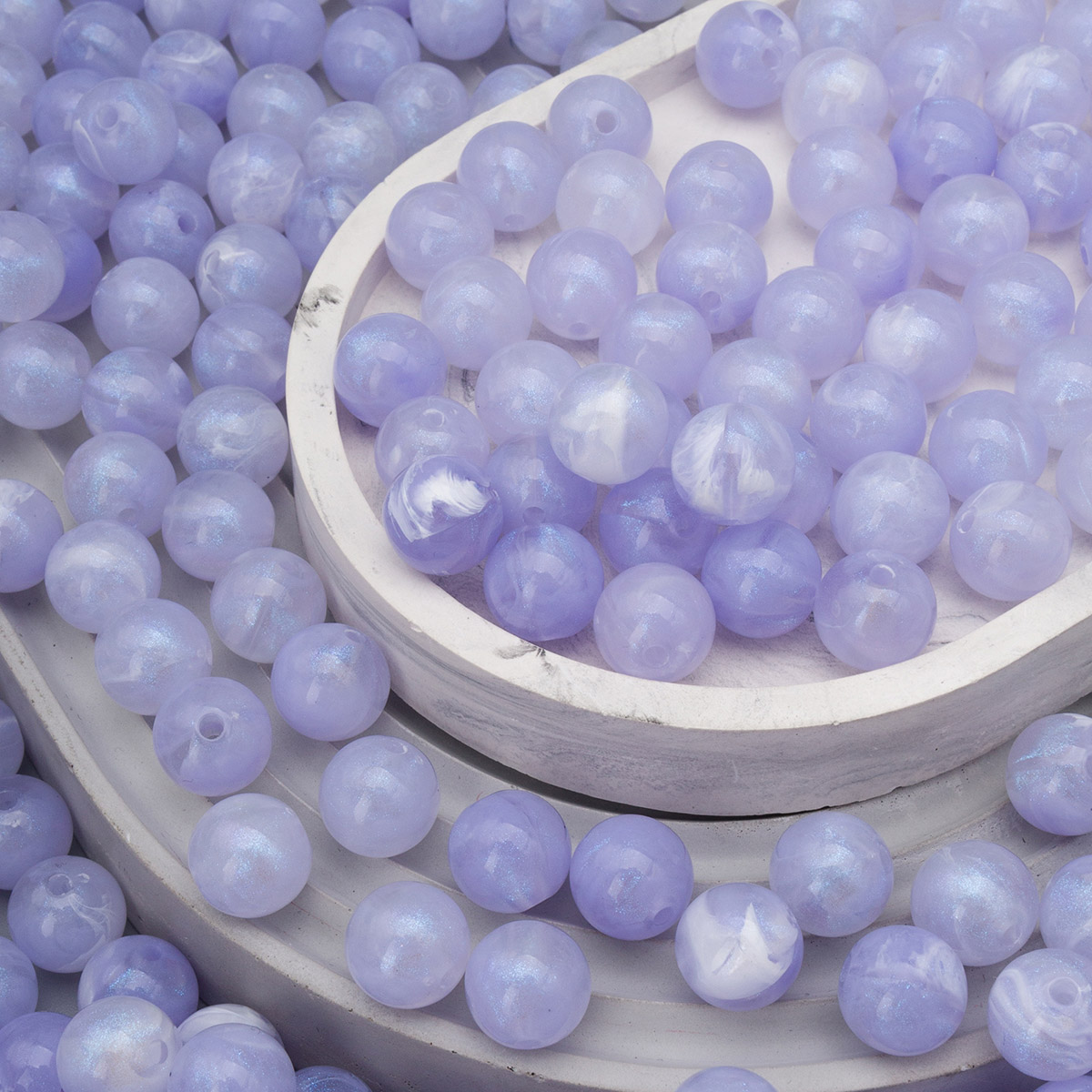 Акриловые бусины с шиммером – это эффектный материал для создания разнообразных украшений ручной работы. Игра оттенков в каждой бусинке создаёт эффект лёгкой дымки, которая придает им глубину и объем. Шиммер красиво переливается при движении, создавая эффект мерцания. Использование акриловых бусин в творчестве развивает у детей мелкую моторику, координацию движений, воображение и фантазию. Акриловые бусины для рукоделия послужат отличной основой для самых разных проектов, начиная от браслетов и чокеров и заканчивая брошами и подвесками. Эти бусины превосходно сочетаются с другими материалами: металлом, бронзой и бисером. При создании украшений используйте тонкую синтетическую нить нейтрального цвета, например, белого или прозрачного, либо же прозрачную леску. Эти материалы практически незаметны на готовом изделии, позволяя бусинам сиять во всей красе. Бусины изготовлены из качественного акрила. Акрил – невероятно легкий материал, поэтому даже самые объемные и многослойные украшения не будут создавать дискомфорт при ношении. Акриловые бусины устойчивы к царапинам, не бьются при случайном падении, сохраняя свою поверхность и яркий первоначальный цвет на протяжении длительного времени. Начните творить прямо сейчас – эти акриловые бусины станут основой для ваших смелых дизайнерских решений.