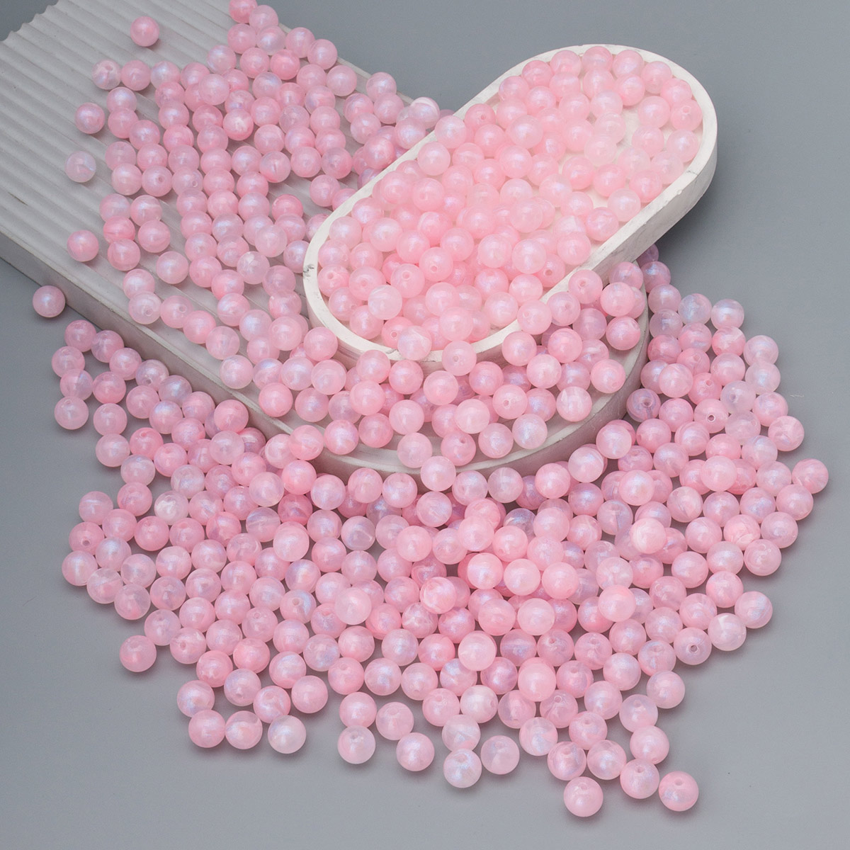 Акриловые бусины с шиммером – это эффектный материал для создания разнообразных украшений ручной работы. Игра оттенков в каждой бусинке создаёт эффект лёгкой дымки, которая придает им глубину и объем. Шиммер красиво переливается при движении, создавая эффект мерцания. Использование акриловых бусин в творчестве развивает у детей мелкую моторику, координацию движений, воображение и фантазию. Акриловые бусины для рукоделия послужат отличной основой для самых разных проектов, начиная от браслетов и чокеров и заканчивая брошами и подвесками. Эти бусины превосходно сочетаются с другими материалами: металлом, бронзой и бисером. При создании украшений используйте тонкую синтетическую нить нейтрального цвета, например, белого или прозрачного, либо же прозрачную леску. Эти материалы практически незаметны на готовом изделии, позволяя бусинам сиять во всей красе. Бусины изготовлены из качественного акрила. Акрил – невероятно легкий материал, поэтому даже самые объемные и многослойные украшения не будут создавать дискомфорт при ношении. Акриловые бусины устойчивы к царапинам, не бьются при случайном падении, сохраняя свою поверхность и яркий первоначальный цвет на протяжении длительного времени. Начните творить прямо сейчас – эти акриловые бусины станут основой для ваших смелых дизайнерских решений.