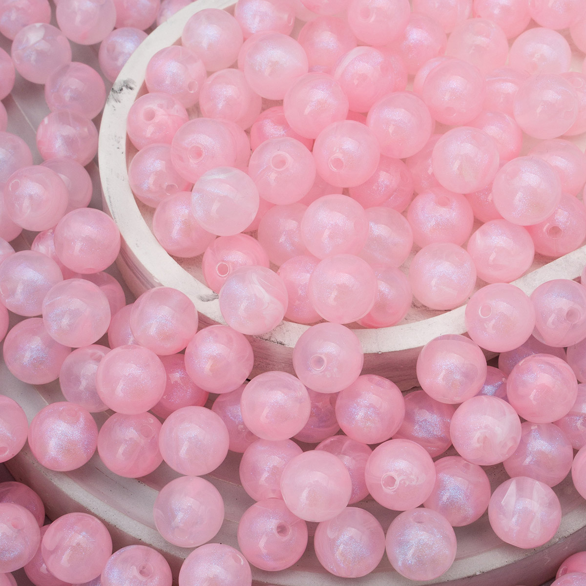 Бусины акрил ⌀12 мм, 500 г, дымка с АВ шиммером, круглые, AD074 розовый, (7748709)2012 , Astra&Craft
