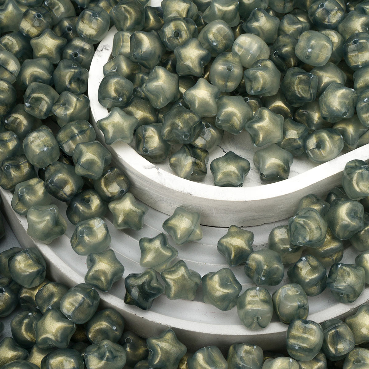 Бусины акрил 12.5х11х10.6 мм, 500 г, дымка, золот. шиммером звезда, AD009 оливковый, (7748706)7557 , Astra&Craft