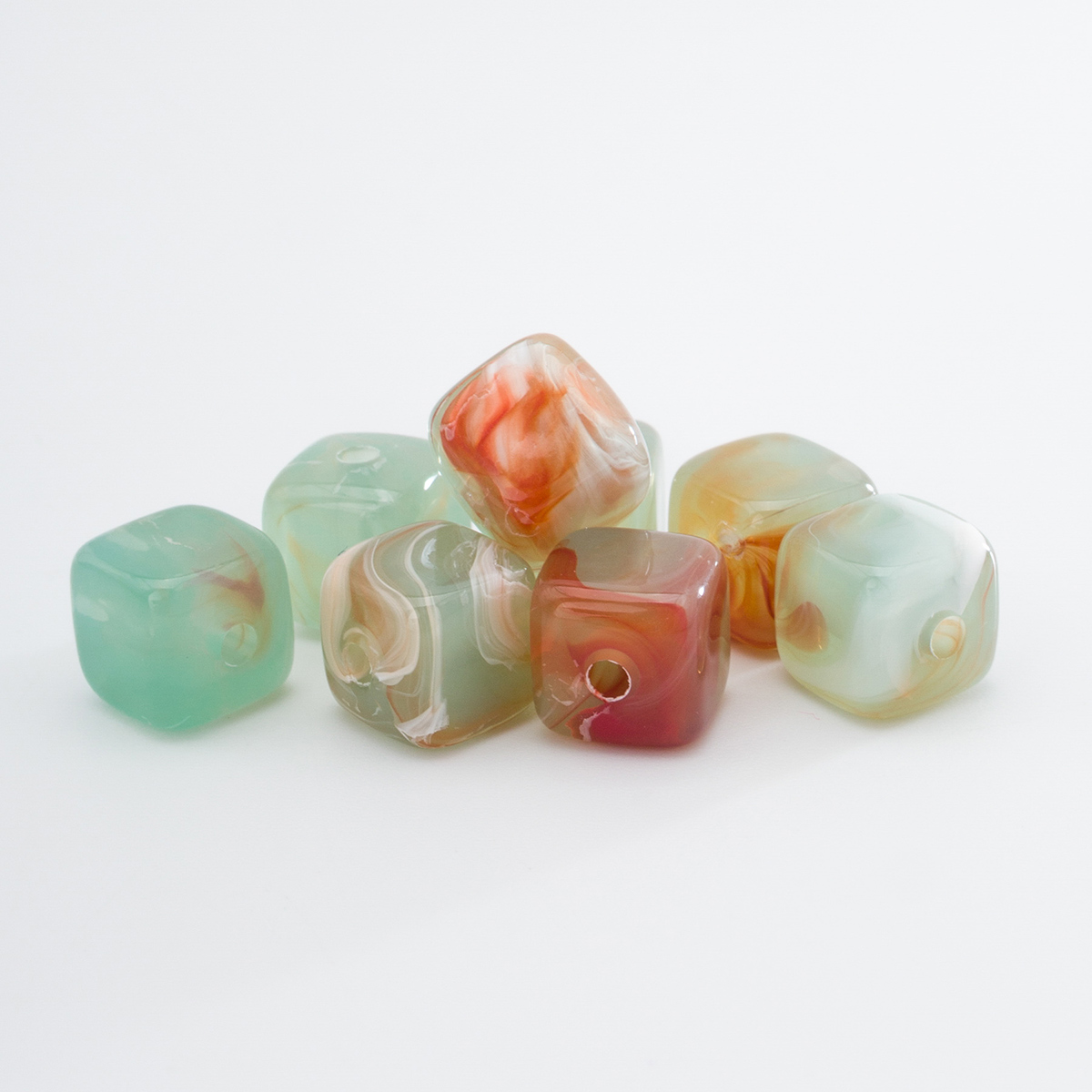 Акриловые бусины в форме куба – это эффектный материал для создания разнообразных украшений ручной работы. Игра оттенков в каждой бусинке придает им глубину и объем. Использование акриловых бусин в творчестве развивает у детей мелкую моторику, координацию движений, воображение и фантазию. Акриловые бусины для рукоделия послужат отличной основой для самых разных проектов, начиная от браслетов и чокеров и заканчивая брошами и подвесками. Эти бусины превосходно сочетаются с другими материалами: металлом, бронзой и бисером. При создании украшений используйте тонкую синтетическую нить нейтрального цвета, например, белого или прозрачного, либо же прозрачную леску. Эти материалы практически незаметны на готовом изделии, позволяя бусинам сиять во всей красе. Бусины изготовлены из качественного акрила. Акрил – невероятно легкий материал, поэтому даже самые объемные и многослойные украшения не будут создавать дискомфорт при ношении. Акриловые бусины устойчивы к царапинам, не бьются при случайном падении, сохраняя свою поверхность и яркий первоначальный цвет на протяжении длительного времени. Начните творить прямо сейчас – эти акриловые бусины станут основой для ваших смелых дизайнерских решений.