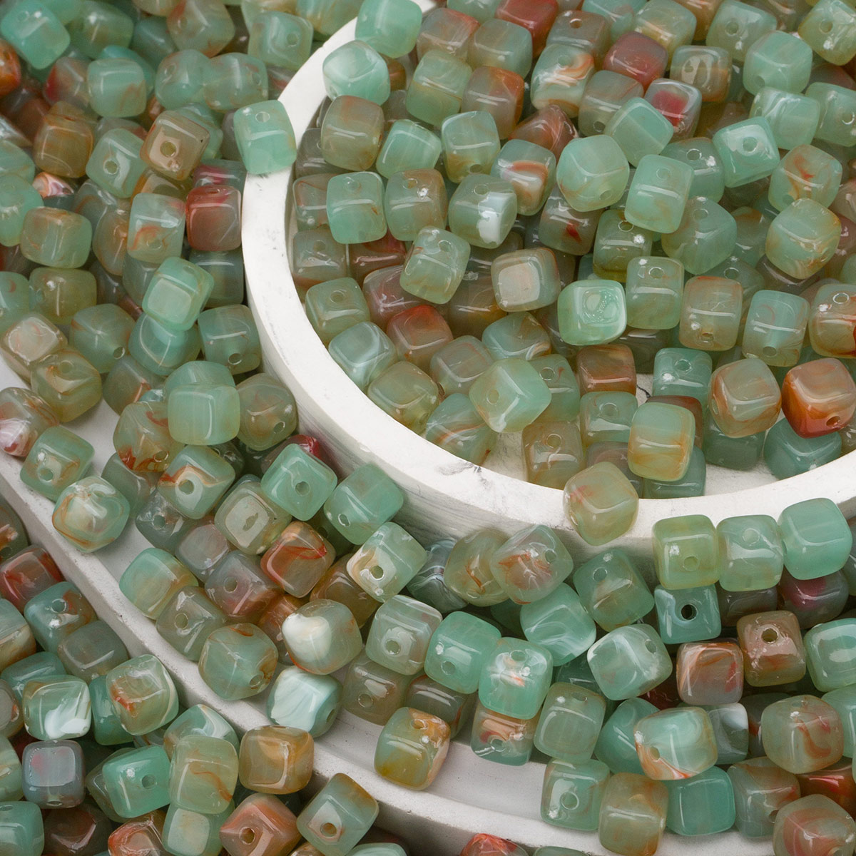 Бусины акрил 6.5х6.6 мм, 500 г, прозрач. в цвете, куб, AD025 нефрит, (7748713)4658 , Astra&Craft