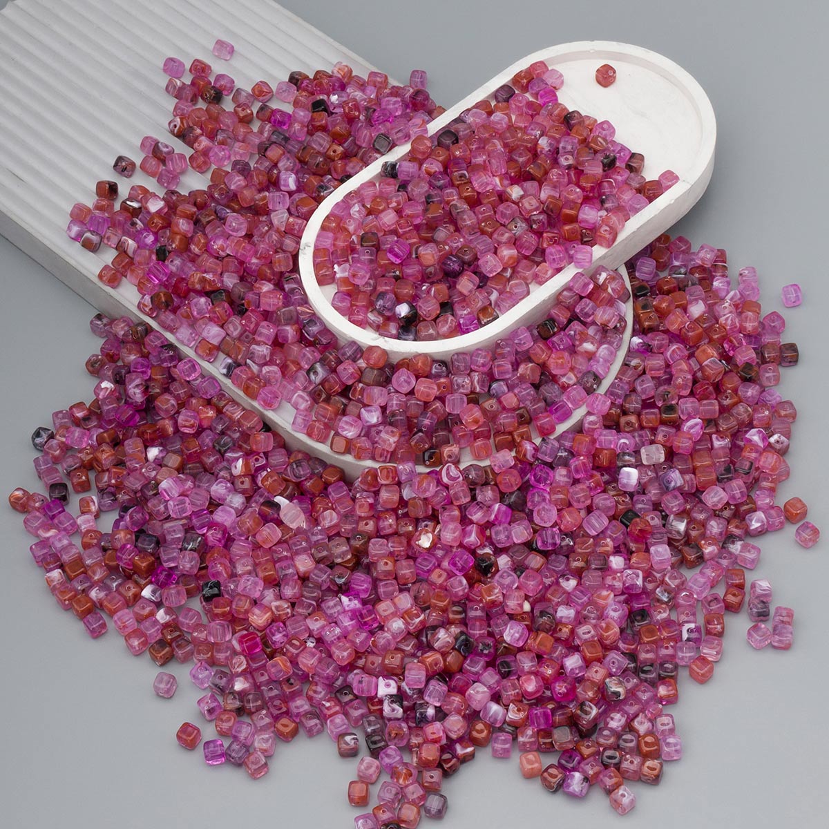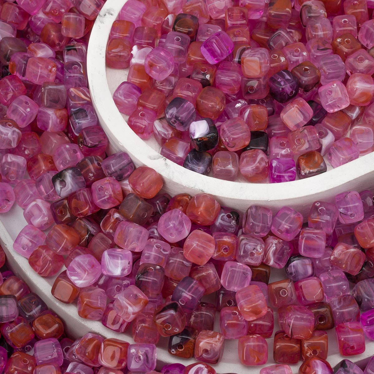 Акриловые бусины в форме куба – это эффектный материал для создания разнообразных украшений ручной работы. Игра оттенков в каждой бусинке придает им глубину и объем. Использование акриловых бусин в творчестве развивает у детей мелкую моторику, координацию движений, воображение и фантазию. Акриловые бусины для рукоделия послужат отличной основой для самых разных проектов, начиная от браслетов и чокеров и заканчивая брошами и подвесками. Эти бусины превосходно сочетаются с другими материалами: металлом, бронзой и бисером. При создании украшений используйте тонкую синтетическую нить нейтрального цвета, например, белого или прозрачного, либо же прозрачную леску. Эти материалы практически незаметны на готовом изделии, позволяя бусинам сиять во всей красе. Бусины изготовлены из качественного акрила. Акрил – невероятно легкий материал, поэтому даже самые объемные и многослойные украшения не будут создавать дискомфорт при ношении. Акриловые бусины устойчивы к царапинам, не бьются при случайном падении, сохраняя свою поверхность и яркий первоначальный цвет на протяжении длительного времени. Начните творить прямо сейчас – эти акриловые бусины станут основой для ваших смелых дизайнерских решений.
