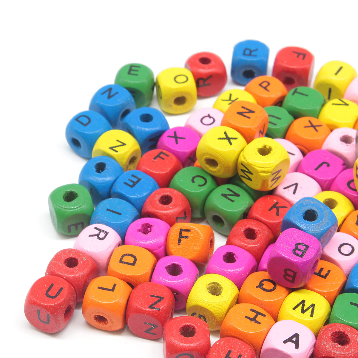 Деревянные бусины в виде кубиков с буквами латинского алфавита – прекрасная основа для создания авторских украшений. Дерево – натуральный и экологичный материал. Из деревянных бусин можно создавать бижутерию, оригинальные сувениры и многое другое. Фигурные бусины окрашены в разные цвета и удачно вписываются в разные стили. Несколько идей: – подберите шнур/леску и сделайте оригинальное украшение: бусы, браслет или колье; – создайте авторскую подвеску на рождественскую елку; – украсьте бусинами подарочную упаковку или предметы интерьера. Размер бусины: 10х10 мм. Количество букв в наборе: – A, E, I, O, U, Y, по 6 штук каждая, всего 36 штук; – B, C, D, F, G, H, J, K, L, M, N, P, Q, R, S, T, V, W, X, Z, по 3 штуки каждая, всего 60 штук. Общее количество: 96 штук.