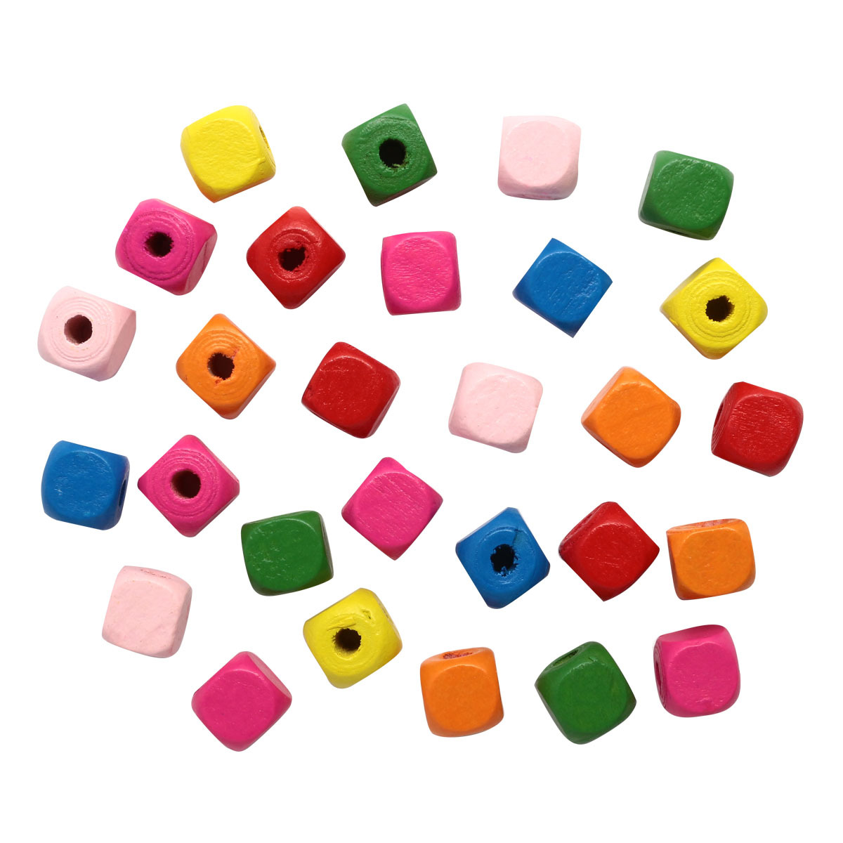 Гладкие деревянные бусины кубической формы, окрашены в разные цвета. Подходят для создания яркой детской бижутерии (браслетов, бус, серег), оригинальных украшений для волос, а также гирлянд, елочных игрушек и других поделок – все зависит от вашей фантазии! Для нанизывания рекомендуется использовать прочные нитки – джутовые, льняные, синтетические, с армированием. Количество в упаковке: 18 г. Размер одной бусины – 10 мм. Российская компания 'Astra&Craft' выпускает товары для шитья, рукоделия, декоративно-прикладного творчества по доступным ценам.