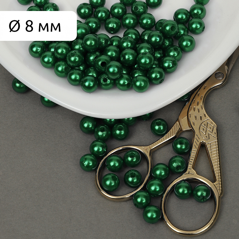 Бусины пластик (перламутр) ⌀8 мм, цв. 035 изумруд, 50 гр. (213 шт), Magic4Hobby