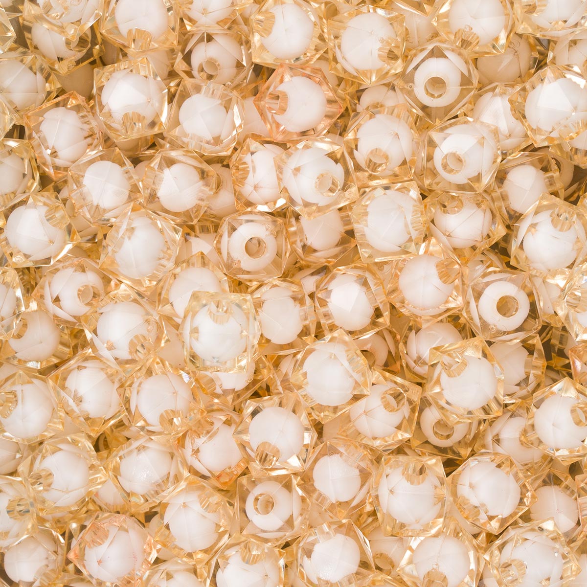 Бусины акрил ⌀10 мм, 500 г, в цвете с белой сердцевиной, граненый куб, 35 бежевый, Astra&Craft