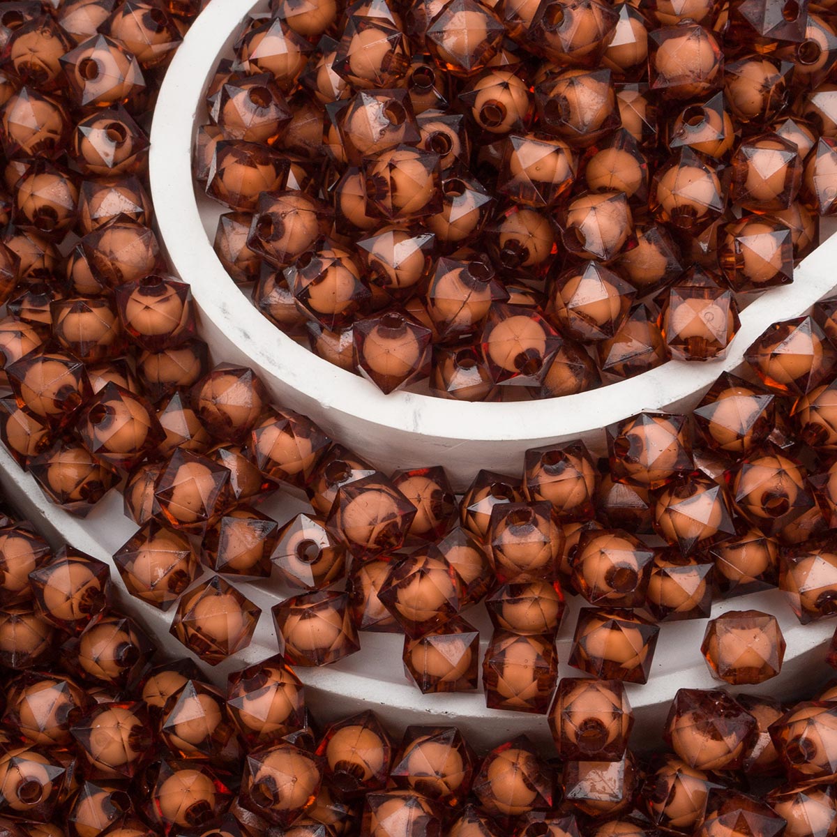 Бусины акрил ⌀10 мм, 500 г, в цвете с белой сердцевиной, граненый куб, 52 коричневый, Astra&Craft