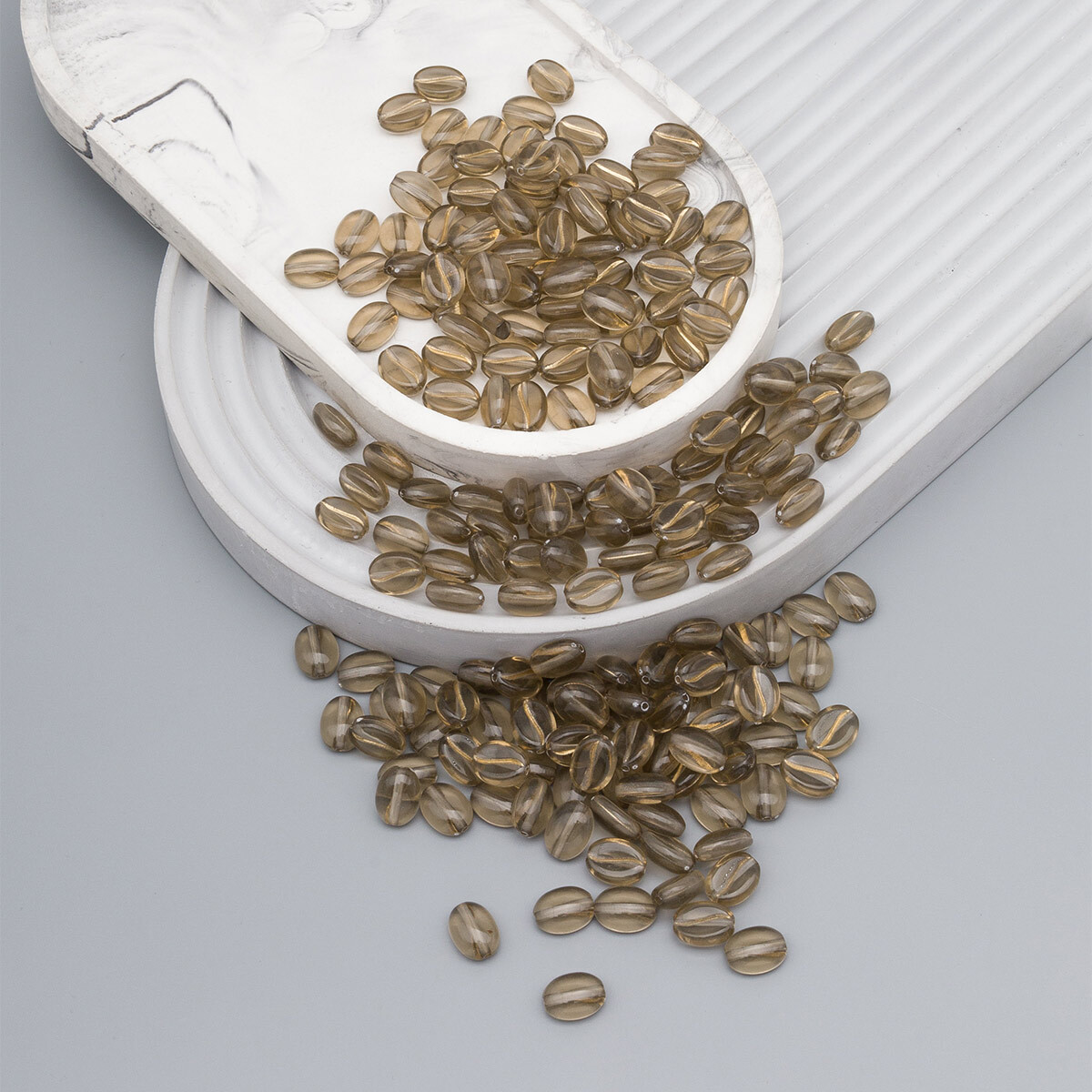 Бусины пластик 10х5 мм, 50 г, кофейное зерно, 12 прозрачное+золото, Astra&Craft, 7541