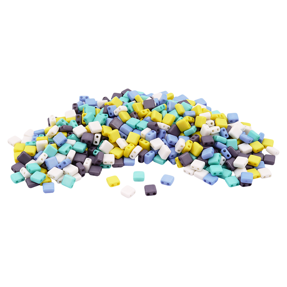 Бусины пластик 6х6х3 мм, 50 г, с двойным отверстием, микс цвета, плоский квадрат, Пастельный, Astra&Craft 7429