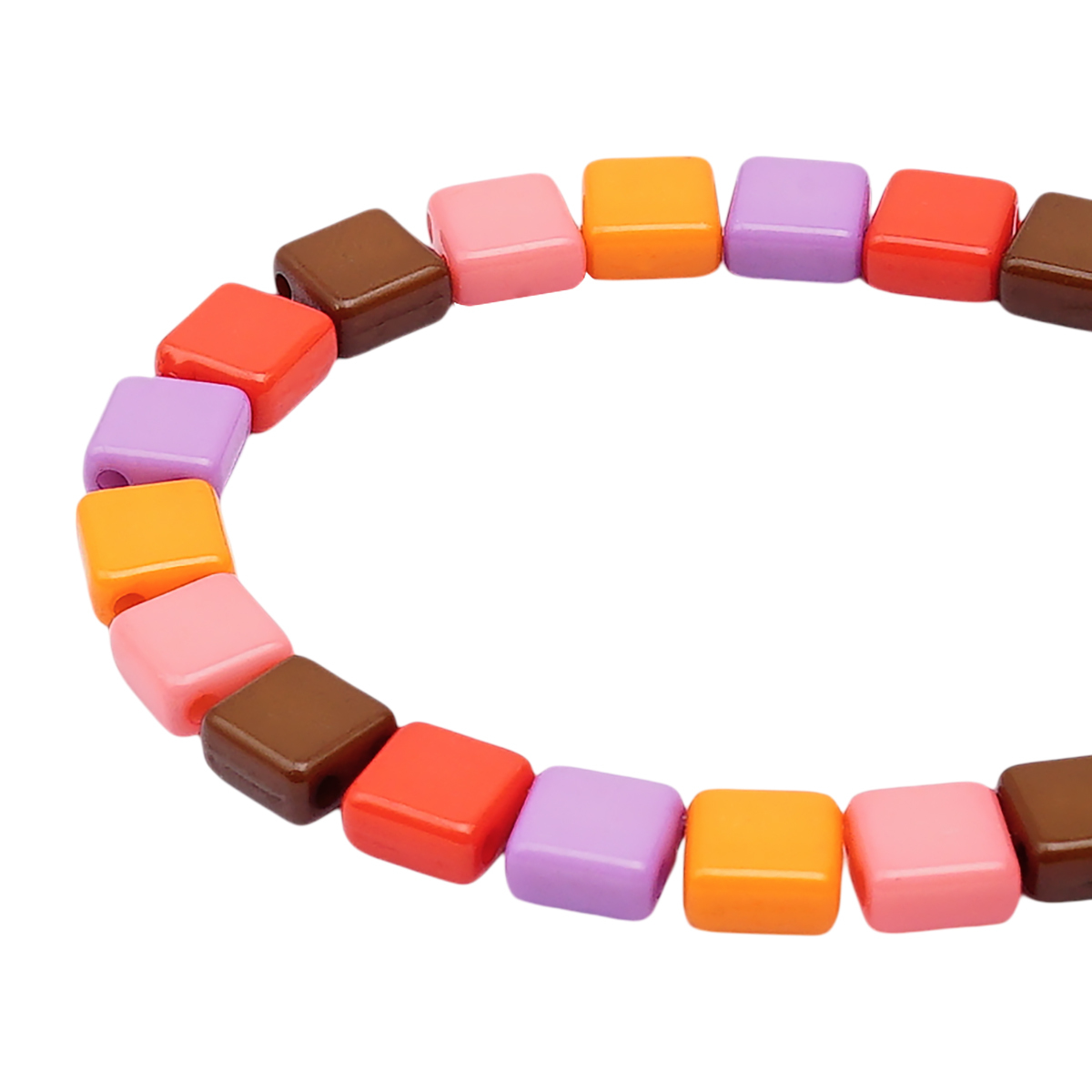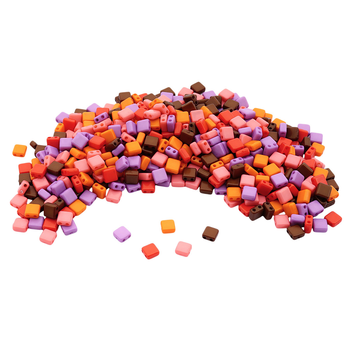 Бусины пластик 6х6х3 мм, 50 г, с двойным отверстием, микс цвета, плоский квадрат, Яркий, Astra&Craft 7429