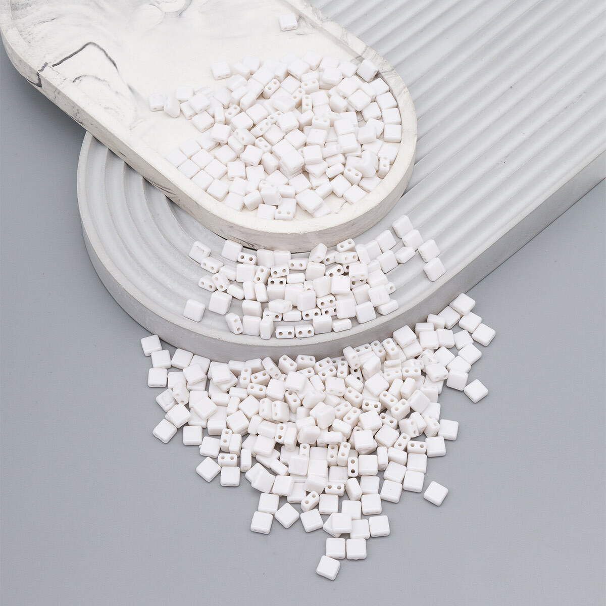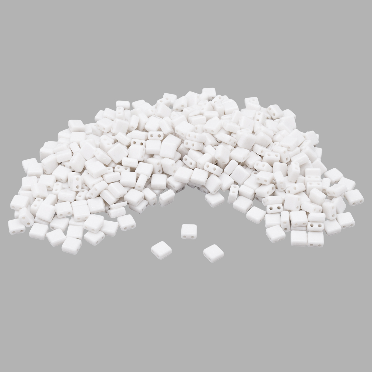 Бусины пластик 6х6х3 мм, 50 г, с двойным отверстием, плоский квадрат, 16 белый, Astra&Craft 7429