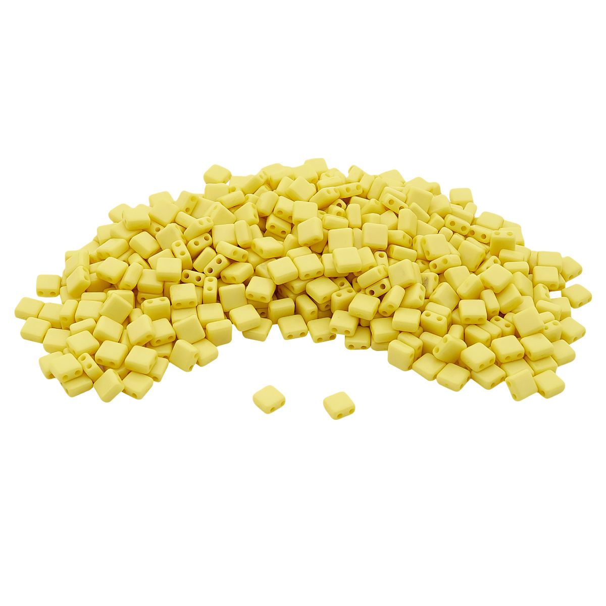 Бусины пластик 6х6х3 мм, 50 г, с двойным отверстием, плоский квадрат, 8 бледно-желтый, Astra&Craft 7429