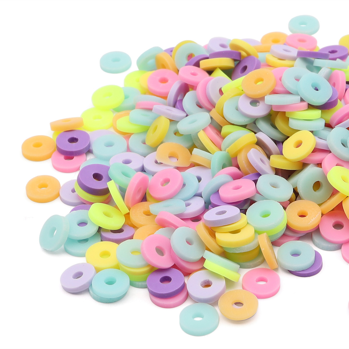 Бусины полимерная глина ⌀6 мм, плоские, 20г, Astra&Craft (B11 розовый, зеленый, желтый микс)