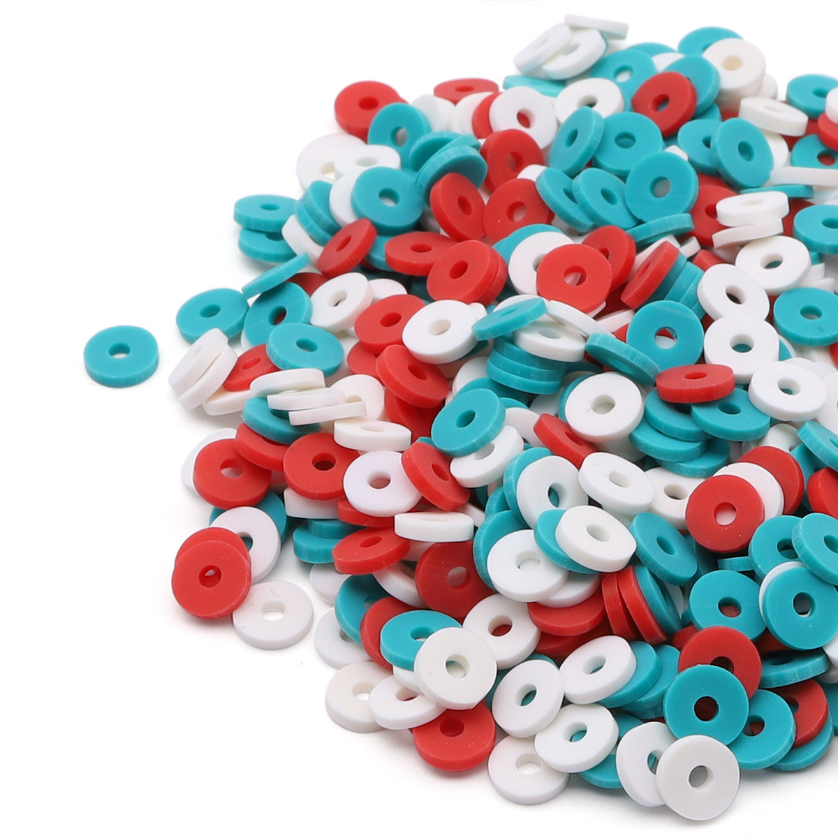 Бусины полимерная глина ⌀6 мм, плоские, 20г, Astra&Craft (B7 зеленый, белый, красный микс)