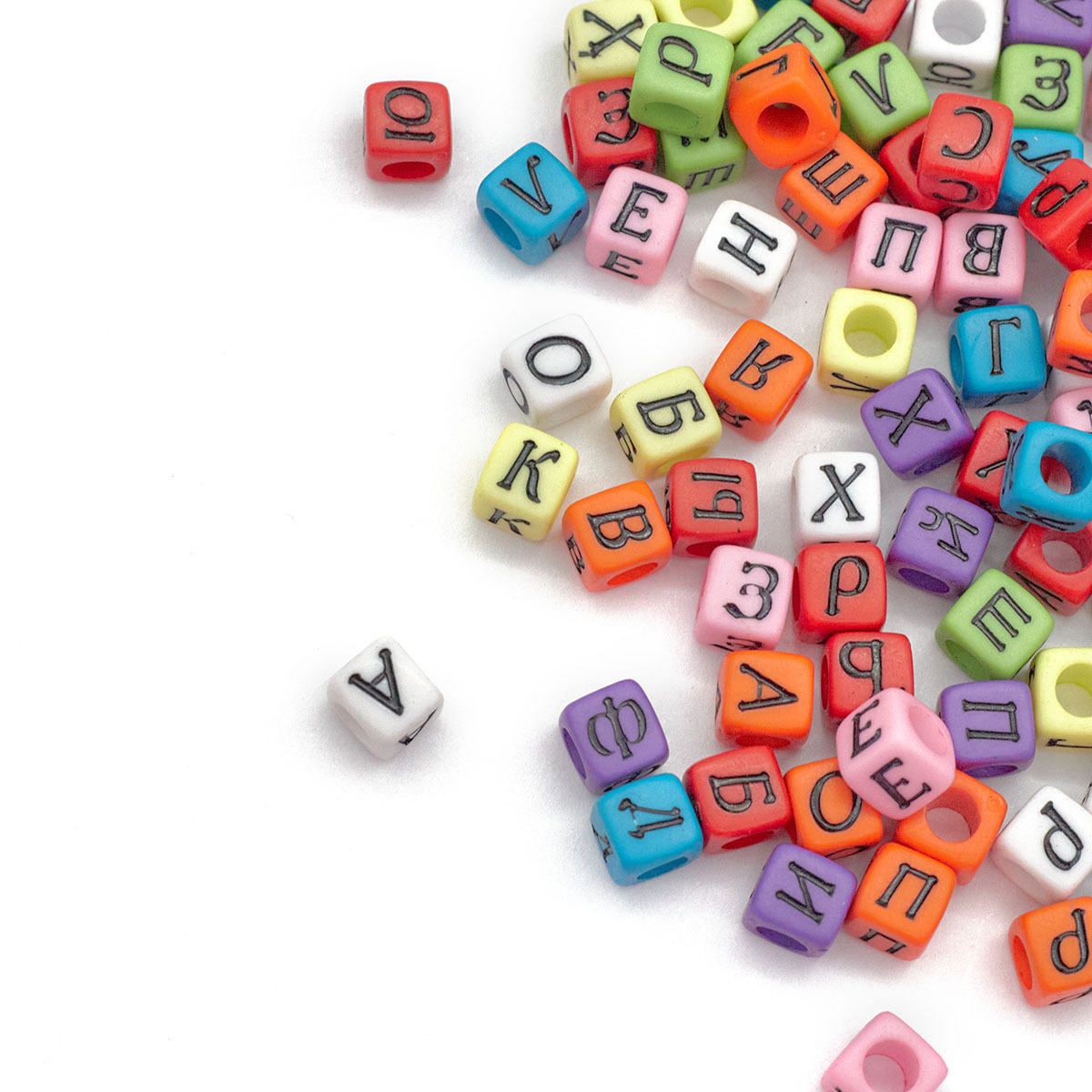 Бусины пластик набор цветные с русскими буквами 6х6 мм, 150 шт/упак, Astra&Craft