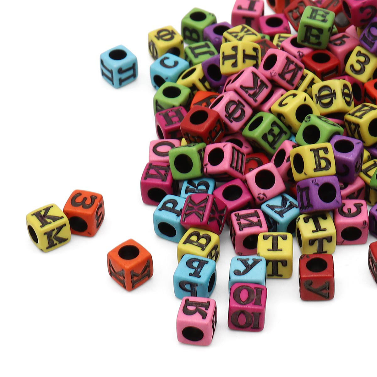 Бусины пластик набор цветные с русскими буквами, черный центр 6х6 мм, 150 шт/упак, Astra&Craft