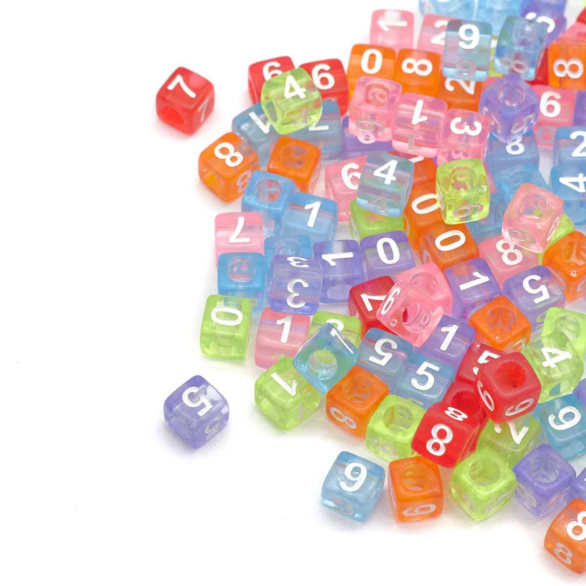 Бусины пластик набор цветные с цифрами 6х6 мм, 150 шт/упак, Astra&Craft