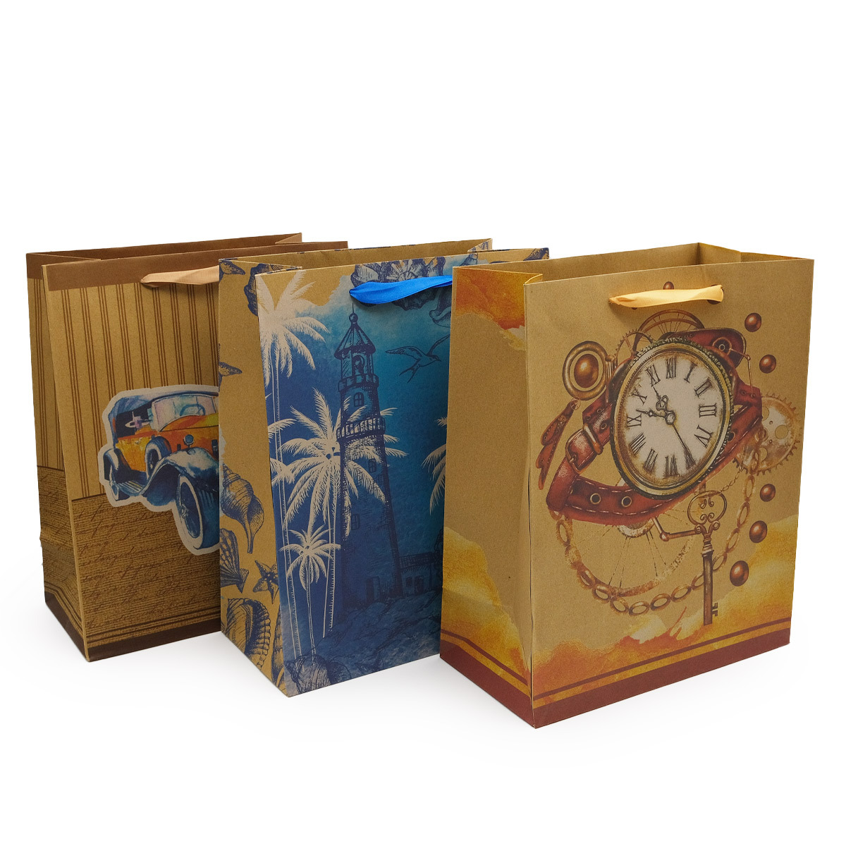 Пакет крафт подарочный Мужской микс 26х32см, уп/12 шт, Ч42358