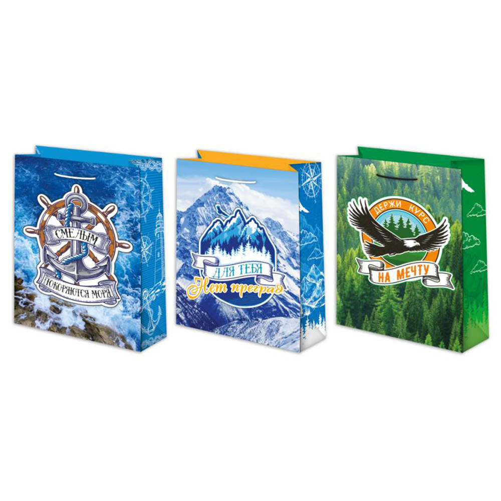Пакет подарочный Мужской микс 22х31см, уп/12 шт, Ч42564