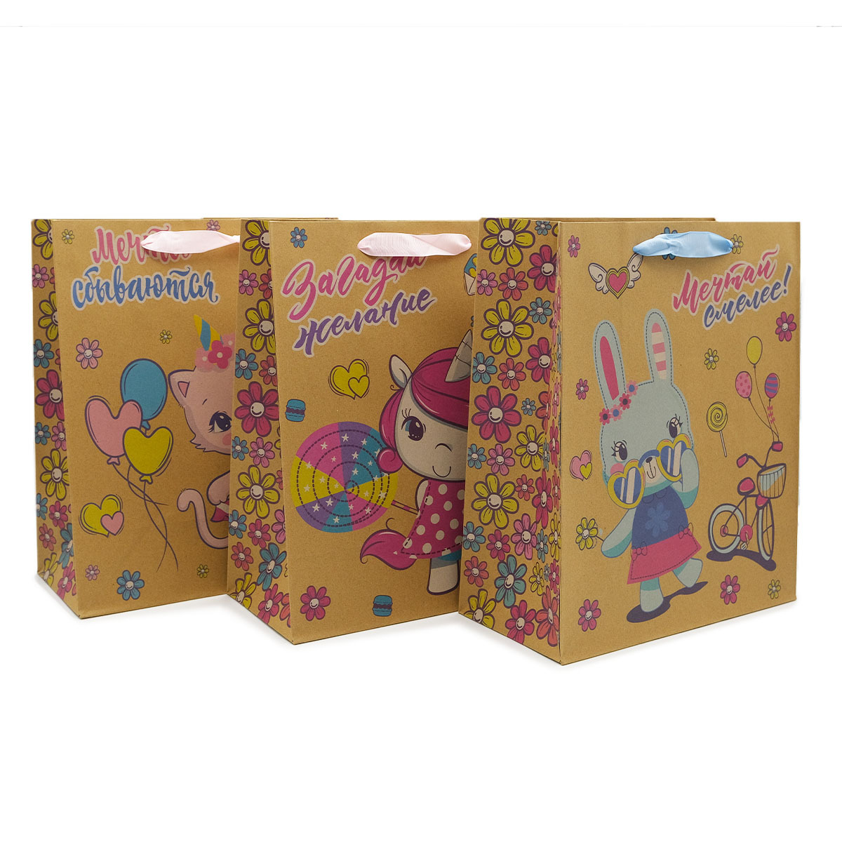 Пакет крафт подарочный Детский микс 26х32см, уп/12 шт, Ч44959
