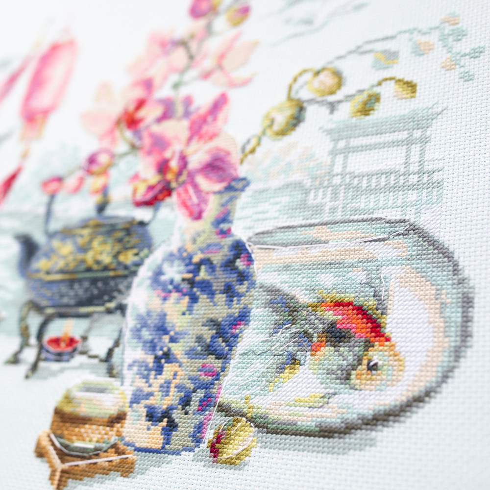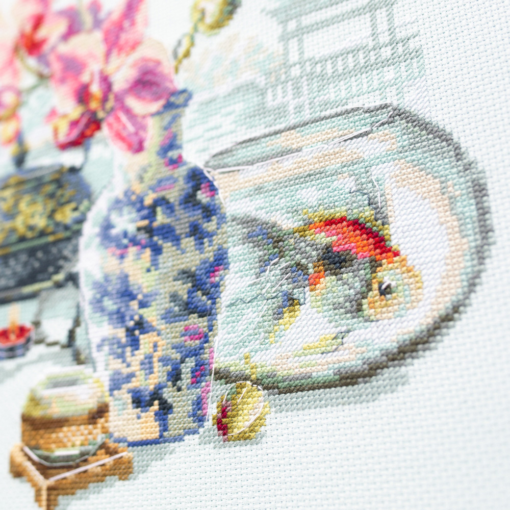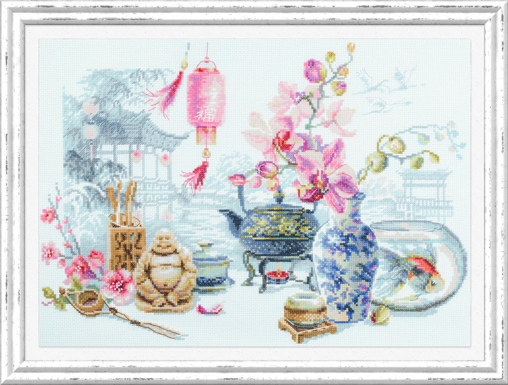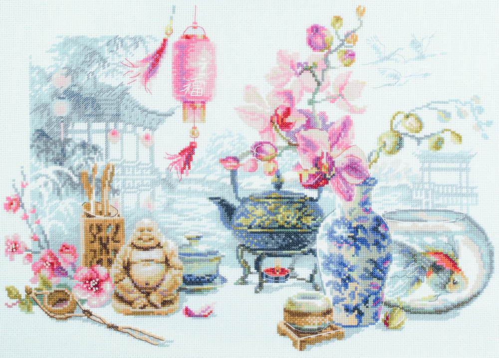 В набор входит: канва Аида 14ct светло-голубого цвета, мулине GAMMA, игла гобеленовая №24, цветная символьная схема, инструкция на русском языке