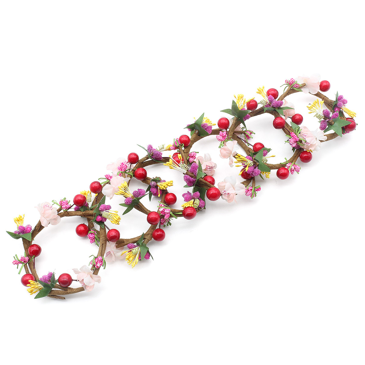 Веночки с искусственными цветами – практичные элементы для оформления праздничного интерьера. Они нарядные и нежные, не требуют особого ухода и надолго сохранят внешний вид. Несколько идей: – оформите венками свечи или вазочки на банкетном столе; – сделайте из венков гирлянду, добавив другие элементы в тон; – украсьте рождественскую елку; – используйте как рамочки при составлении праздничного панно с фотографиями, открытками. В наборе: венок декоративный Цветы и жемчуг, цвет фуксия, размер 7,5х2,5 см, 6 штук.