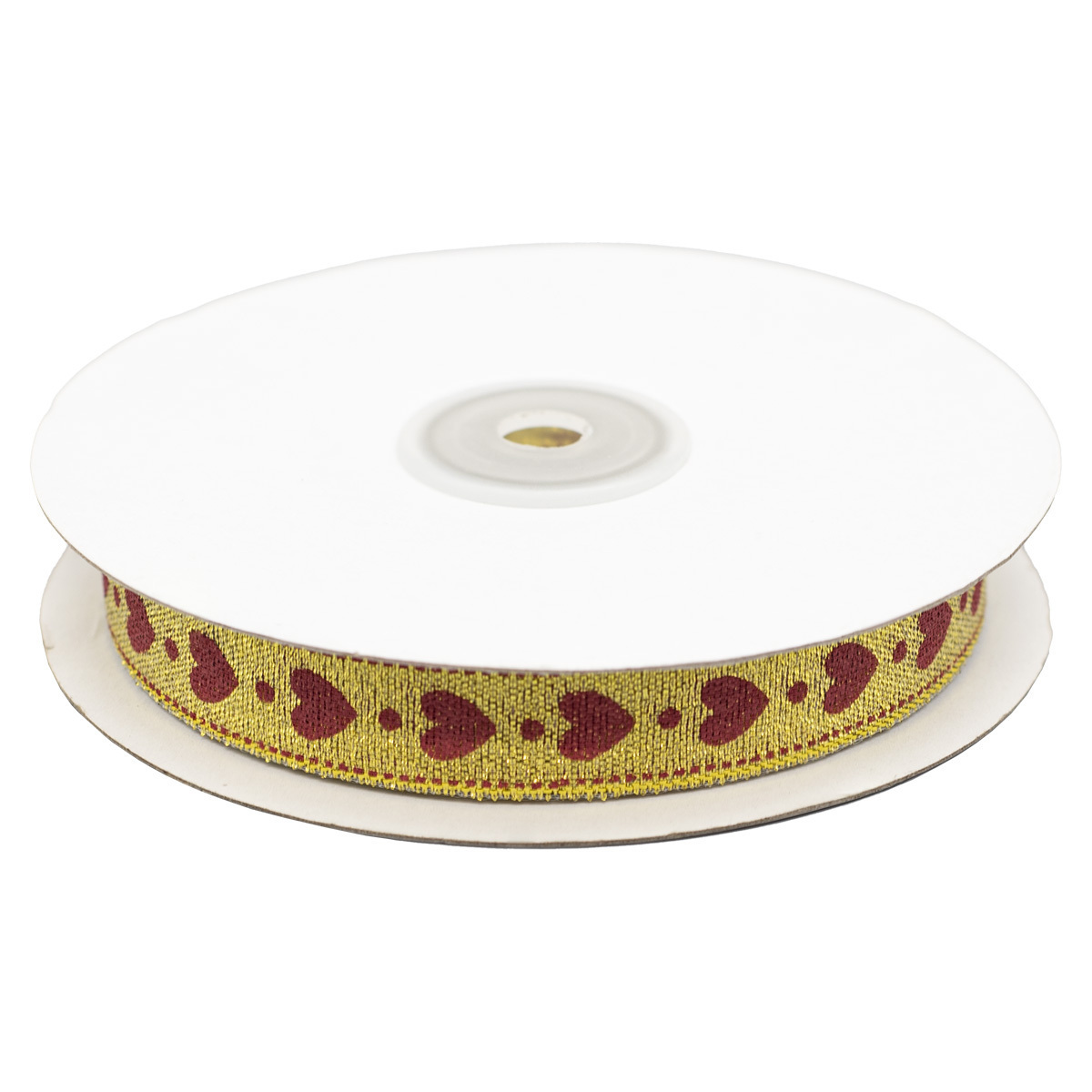 Лента декоративная Сердечки, DM-011, 15.0 мм / 32,9м золото/красный