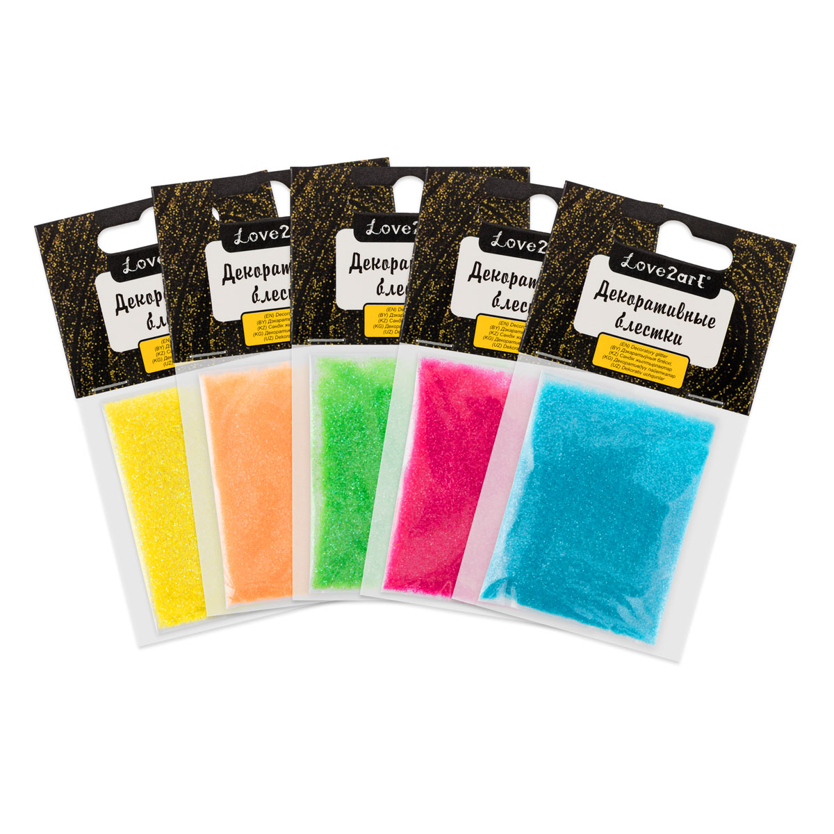 Блестки декоративные ассорти 0.2 мм, 5 уп. по 5 г, 4.5 мл, № 02, Love2art Набор ассорти GLI