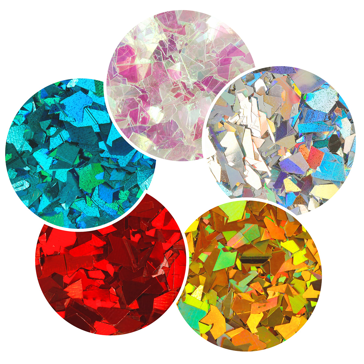 Блестки декоративные ассорти хлопья 0.2х6 мм, 5 уп. по 5 г, 4.5 мл, № 01, Love2art Набор ассорти "хлопья" GLI-02