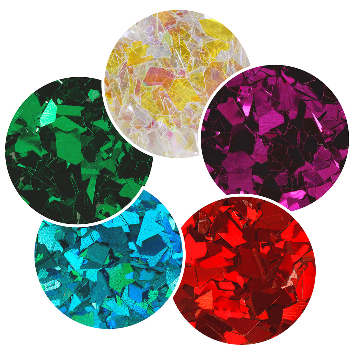 Блестки декоративные ассорти хлопья 0.2х6 мм, 5 уп. по 5 г, 4.5 мл, № 02, Love2art Набор ассорти "хлопья" GLI-02