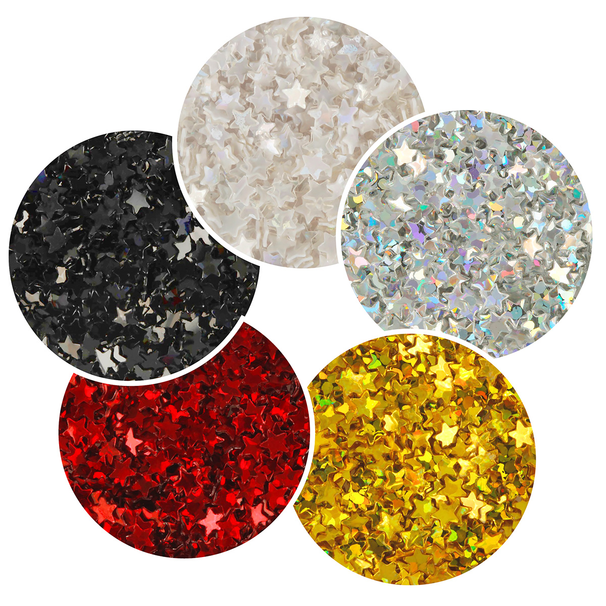 Блестки декоративные ассорти звезды 3 мм, 5 уп. по 5 г, 4.5 мл, № 02, Love2art Набор ассорти "звезды" GLI-04