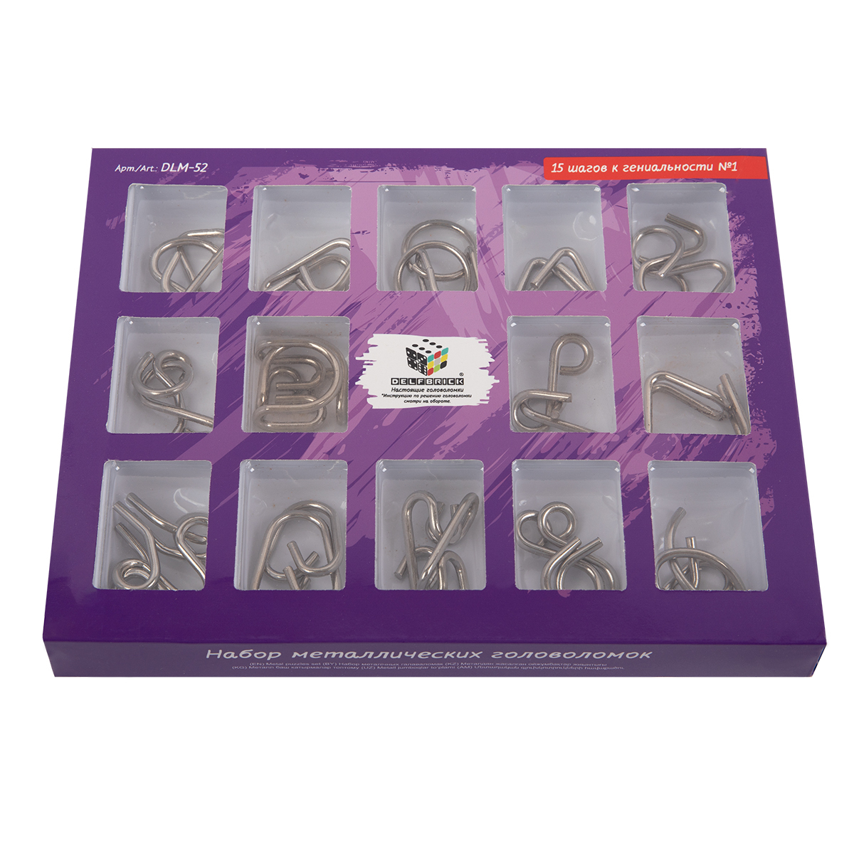 Набор металлических головоломок ТМ "DELFBRICK" арт. DLM-52 - это набор игрушек, состоящих, как правило, из нескольких частей, которые надо разобрать и снова собрать, решив, таким образом, некую логическую задачу.