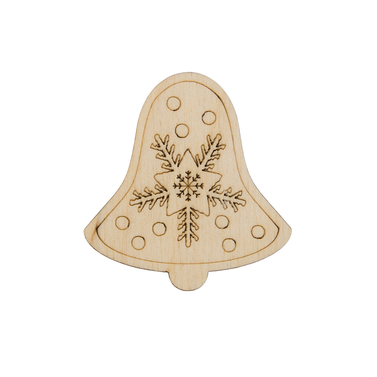 Резная заготовка в виде нарядного колокольчика, основа для создания сувенира. Из этой заготовки можно сделать оригинальный магнит на холодильник, украшение на елку, элемент для декоративного панно и другие поделки. Фигурка изготовлена из тонкой фанеры. Фанера – универсальная основа для декора, которую можно расписать, украсить в технике декупажа, а для защиты от внешних воздействий – покрыть лаком, воском, другим финишным составом. Рекомендации: хранить в сухом месте (рекомендуемая влажность воздуха 40-60%) при температуре от 18 до 25гр.C. Размер: 5,6х5,9 см, толщина фанеры 3 мм.