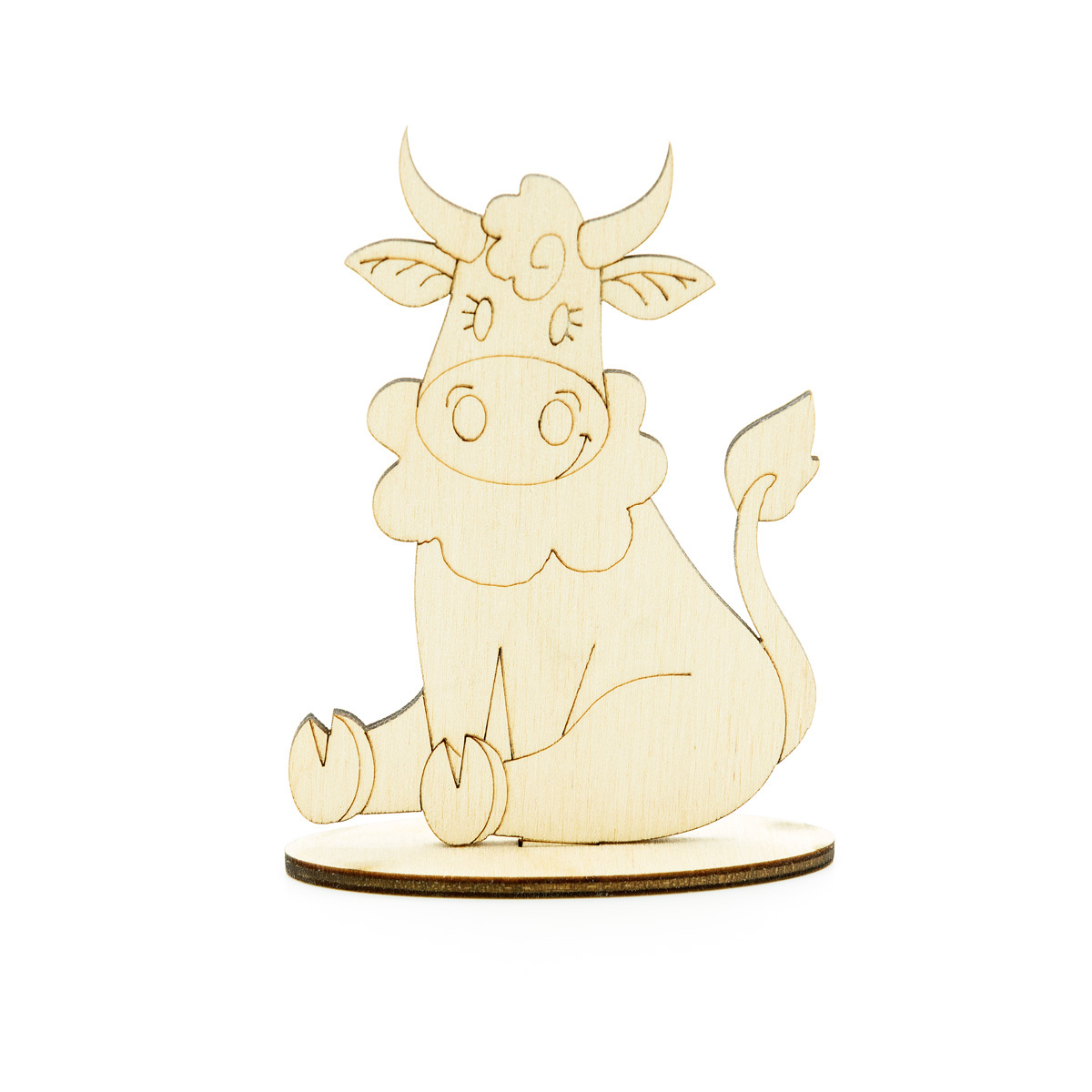 Резная заготовка в виде коровки, на подставке, с лазерной гравировкой. Потребуется простая сборка, при необходимости можно использовать клей. Заготовка подходит для создания сувенира-подарка. Изготовлена из тонкой фанеры. Фанера – универсальная основа для декора, которую можно расписать, украсить в технике декупажа, а для защиты от внешних воздействий – покрыть лаком, воском, другим финишным составом. Рекомендации: хранить в сухом месте (рекомендуемая влажность воздуха 40-60%) при температуре от 18 до 25гр.C. Размер: 9х7х2,4 см.