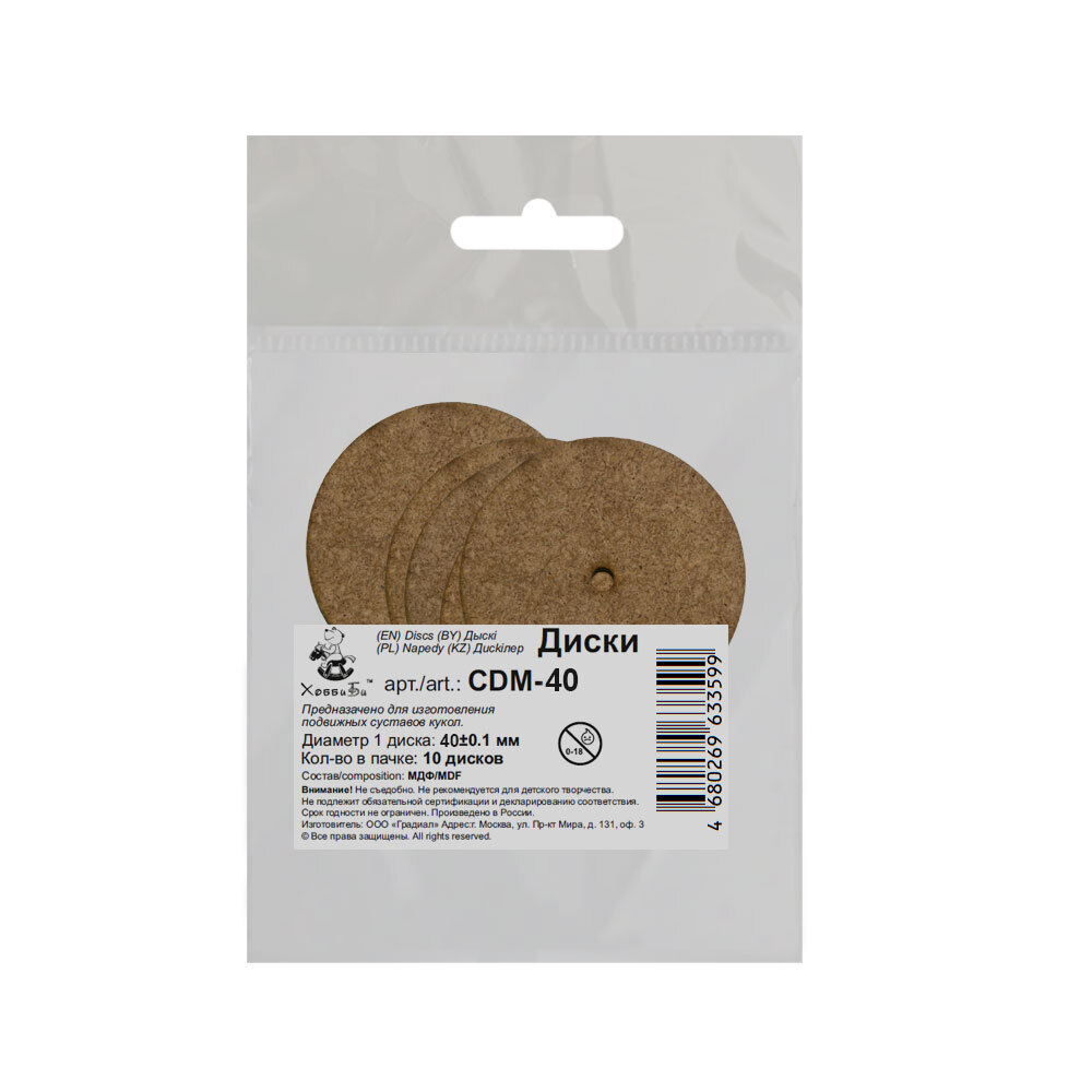 Диски из прессованной древесины ТМ "HobbyBe" артикул CDМ-40 - прочные, отлично подойдут для создания мишек Тедди и авторских игрушек. Диски крепкие, износостойкие. Благодаря креплениям с такими дисками игрушка будет долго радовать вас своим первоначальным видом.