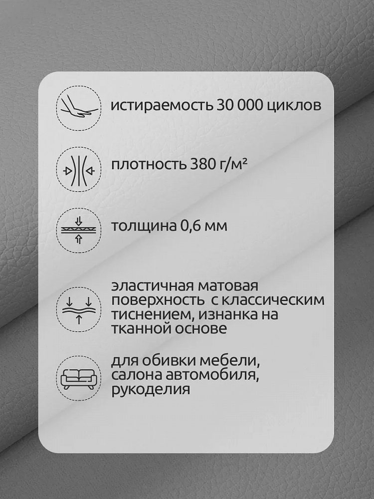 Экокожа 380 г/м², 140 см / 2 метра, 100% PVC, KN.04, светло-серый