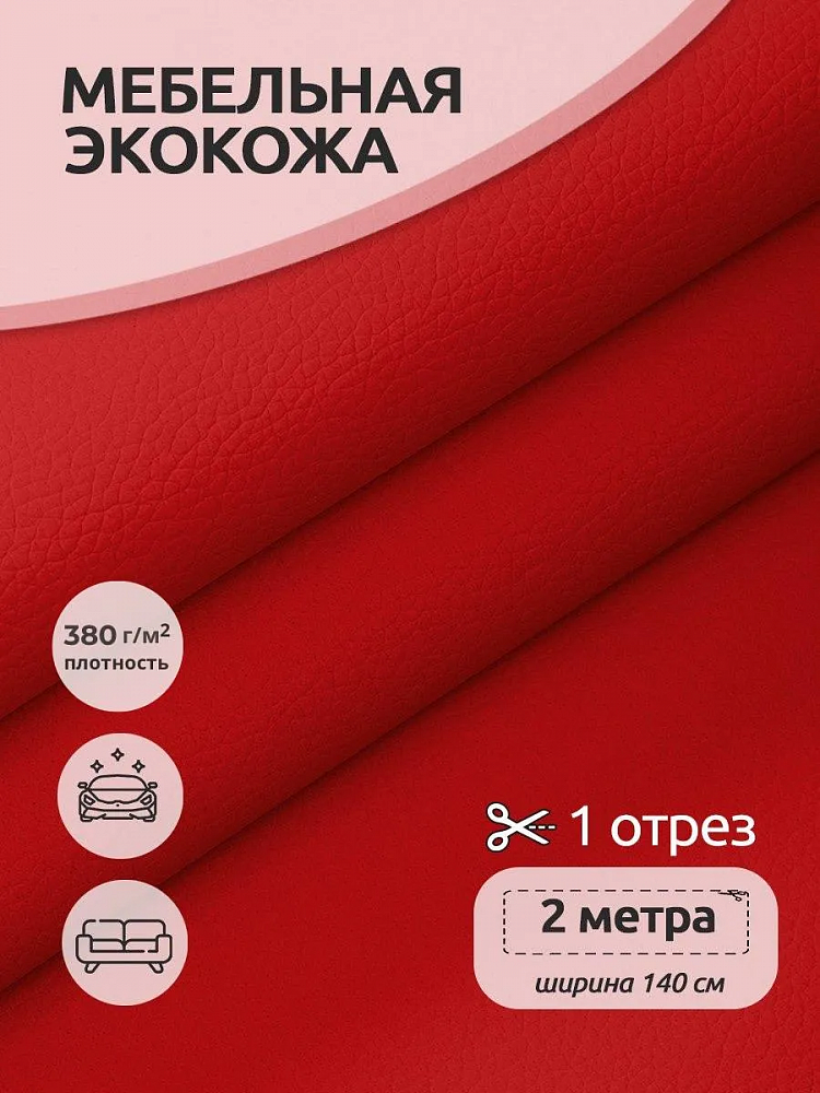 Экокожа 380 г/м², 140 см / 2 метра, KN.08, красный