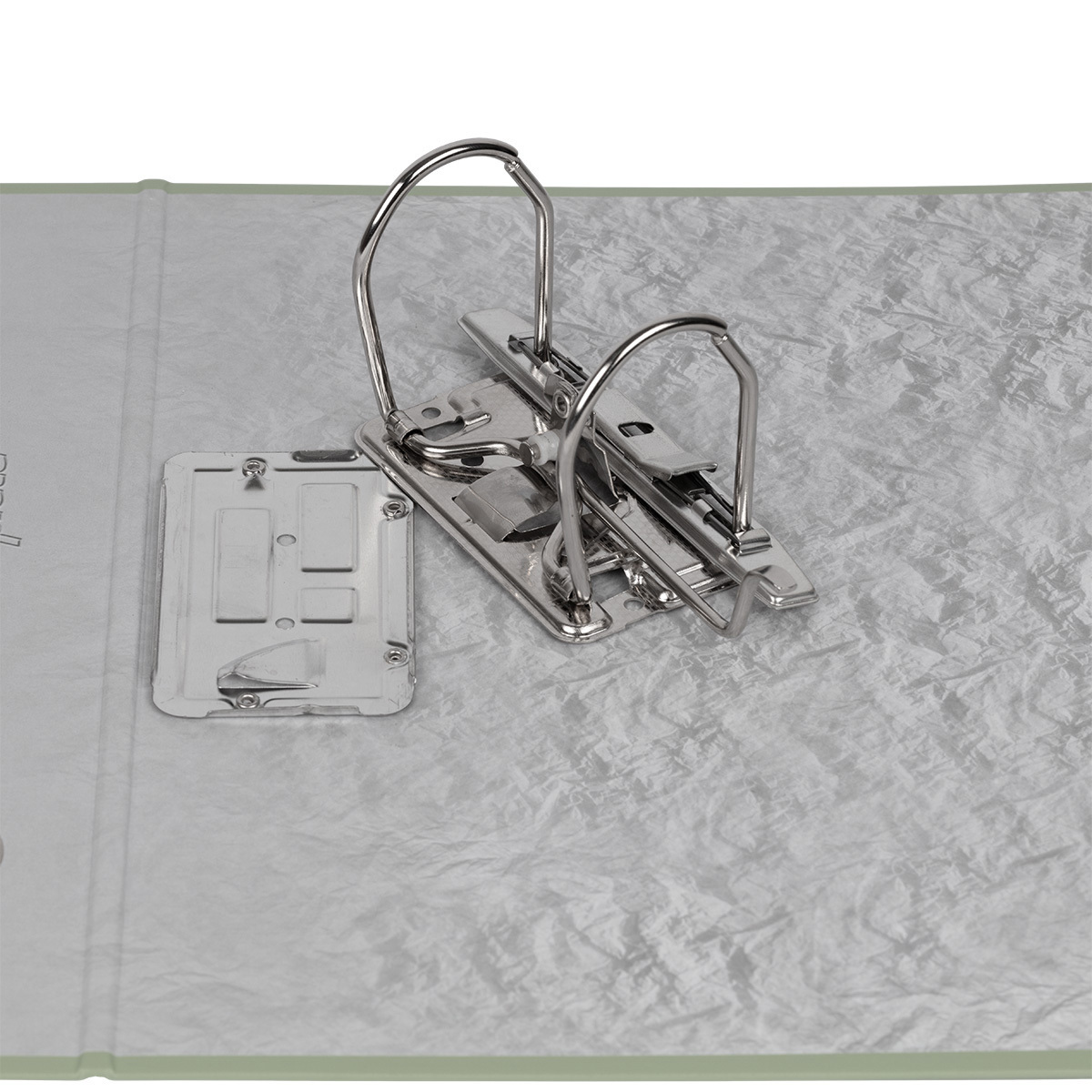 Изготовлена из плотного картона, обеспечивающего жёсткость и правильную геометрию изделия. Износоустойчивая обложка под мрамор позволяет надолго сохранить первоначальный вид даже при интенсивном использовании. Нижние края защищены металлическим кантом. На корешке предусмотрено поле для маркировки. Хромированная фурнитура, не подверженная коррозии. Специальные прорези фиксируют папку в закрытом положении, предохраняя от непроизвольного открывания. Кольцо-захват на торце папки для удобства извлечения с полки. Поле для записей на форзаце.