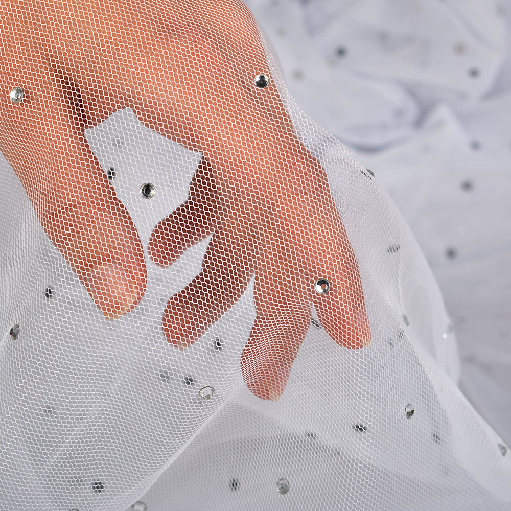Фатин со стразами 150 см / 15 метров, 231.1-14, цв.белый