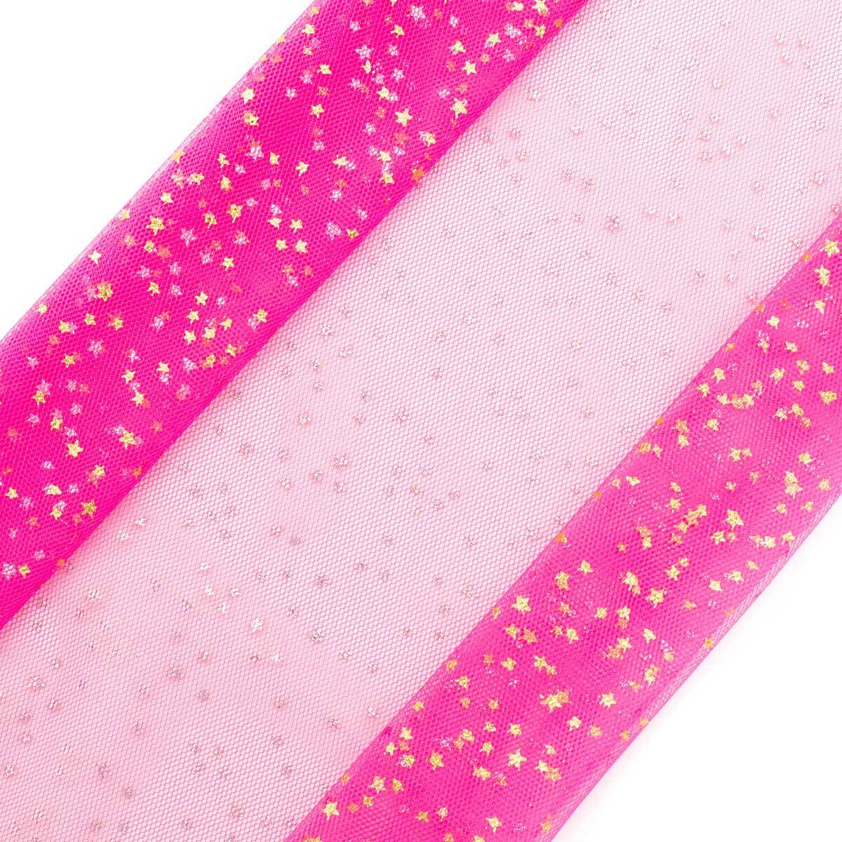 Фатин со звездочками 50х50см, ярко-розовый, AR1371