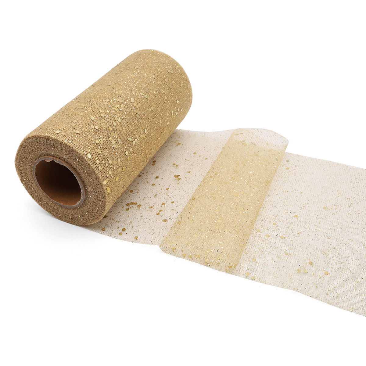 Фатин на шпульке средней жесткости с глиттером и блестками 150мм, 22,86м (золото)