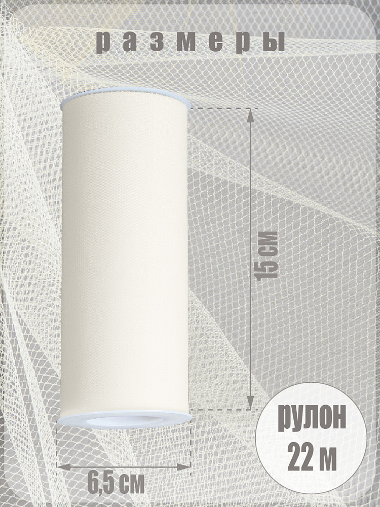 Фатин на шпульке средней жесткости 150 мм / 22.86 метра, TBY.MS.200.02, цв.02 молочный