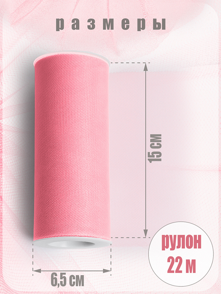 Фатин на шпульке средней жесткости 150 мм / 22.86 метра, TBY.MS.200.04, цв.04 розовый