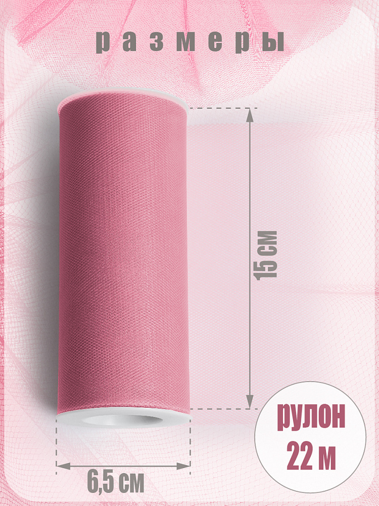 Фатин на шпульке средней жесткости 150 мм / 22.86 метра, TBY.MS.200.05, цв.05 роза