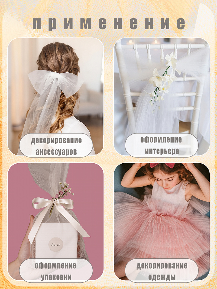 Фатин на шпульке средней жесткости 150 мм / 22.86 метра, TBY.MS.200.11, цв.11 желтый